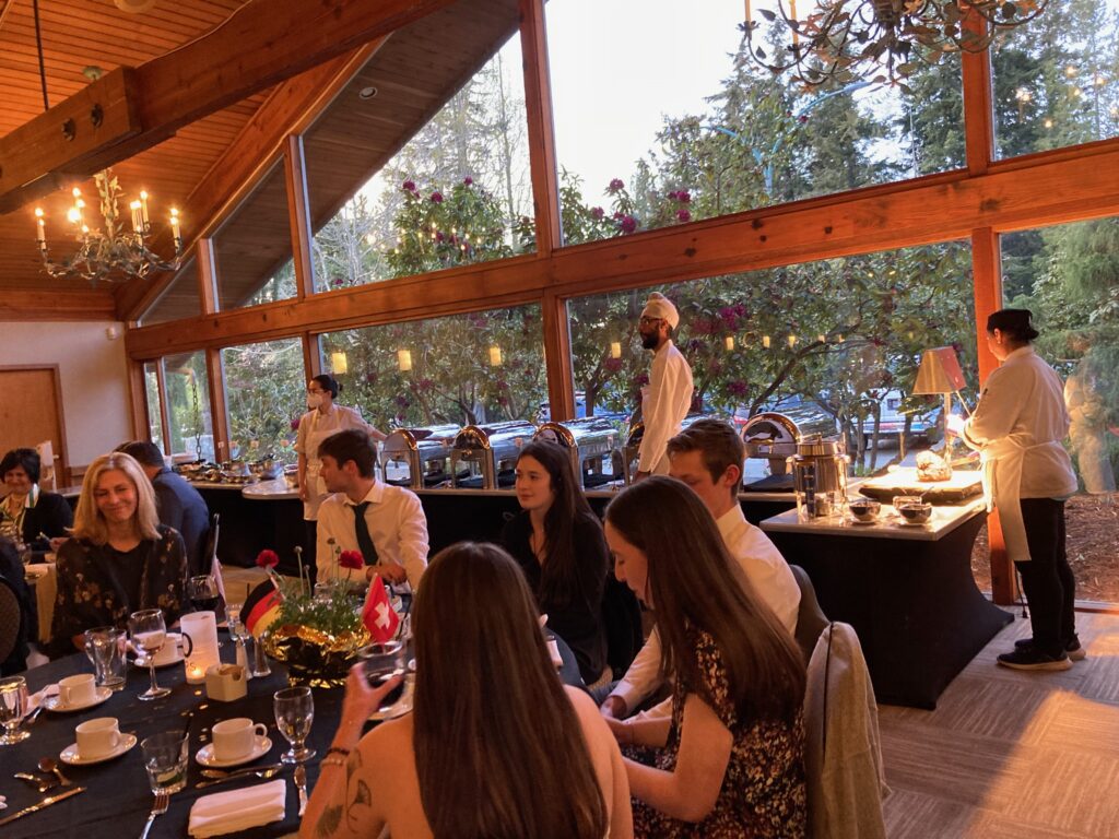 Surrey Hazelmere Golf Course – April 23, 2022 – The Surrey German Language School held an amazing party on Saturday, April 23 to celebrate their 50th Anniversary. The Venue had plenty of indoor and outdoor space, enough to allow room for 13 tables, two rows of generous gifts for the silent auction, a photo booth, a dance floor and a cash bar (that didn’t take cash LOL) and a patio that were decorated with Swiss and Austrian flags. These flags were all donated by Wolfgang Christl, via Elke, and I am sure he would have been happy to see this.